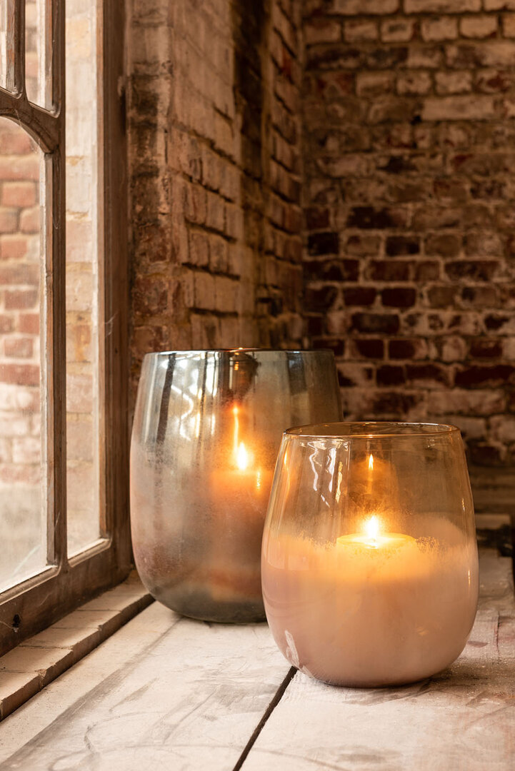 Steklena vaza, ki lahko služi tudi kot svečnik.