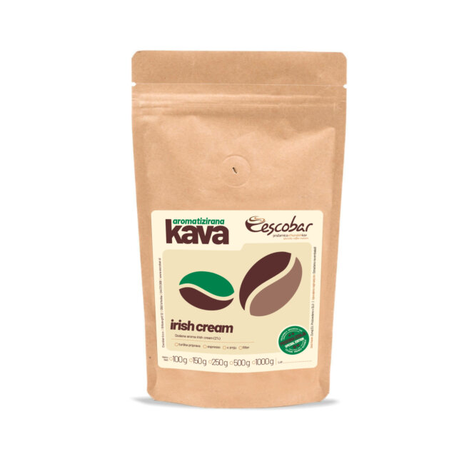 Kavni mešanici dodamo aromo irish cream (2 %). Aromo dodajamo sveže praženi kavi, takoj po praženju, ko so kavna zrna najbolj dovzetna za prevzemanje okusa in arome iz okolice. Nato pustimo kavo počivati vsaj 48 ur, ko je pripravljena, da jo pošljemo na vaš naslov.