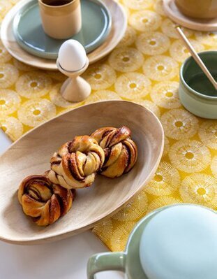 Dimenzija: 27x20 cm, izdelan iz laminiranega brezovega furnirja s certifikatom FSC, primerno za pomivanje v pomivalnem stroju.
