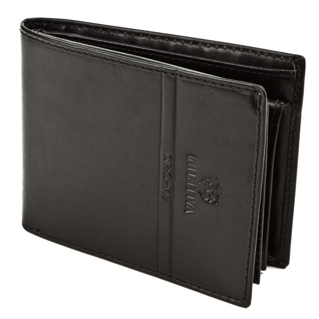 Moška usnjena denarnica Emporio Valentini v črni barvi je izdelana iz kakovostnega usnja. Denarnica je elegantnega in prefinjenega videza, primerna za vsakega moškega in za vsak žep. Ima veliko predalčkov za vaše kartice, bankovce, dokumente.